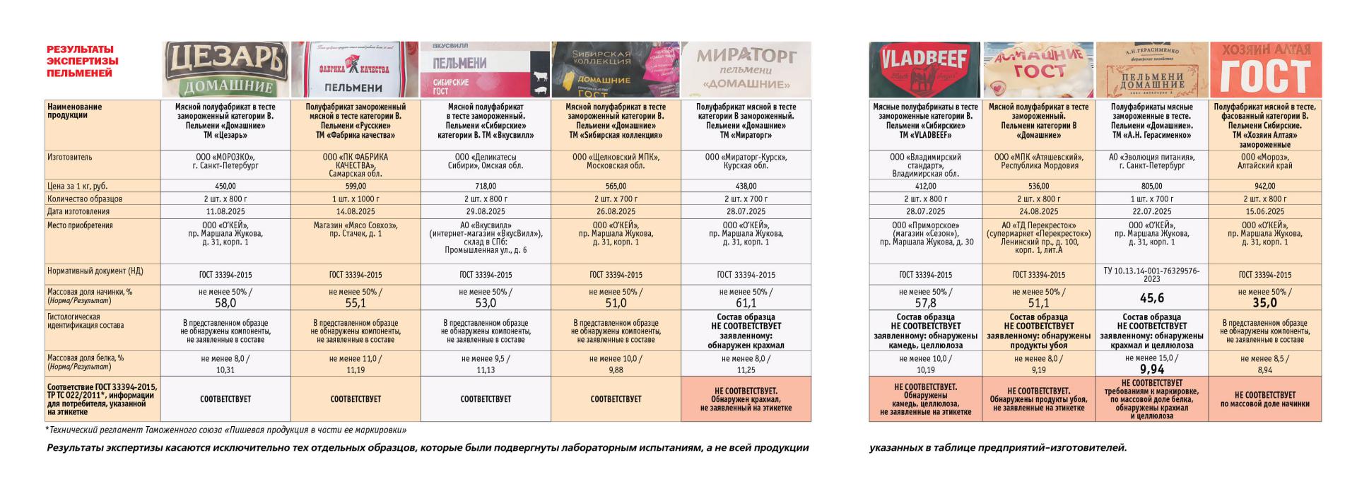 Экспертиза показала, что все изготовители, выпускающие пельмени по ГОСТу, соблюдают требование государственного стандарта по количеству начинки (не менее 50%). Также, согласно результатам лабораторных исследований, все проверенные образцы соответствовали обязательным микробиологическим требованиям: в них не было обнаружено бактерий группы кишечных палочек (БГКП), наличие которых свидетельствует о нарушении санитарных норм в процессе производства продукции, хранения сырья, перефасовки или транспортировки.