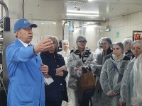 Кроме этого, студенты Политеха ознакомились с технологией производства колбасных изделий, посетили различные цеха и участки. Экскурсию по мясокомбинату провел генеральный директор Виталий Елфимов.